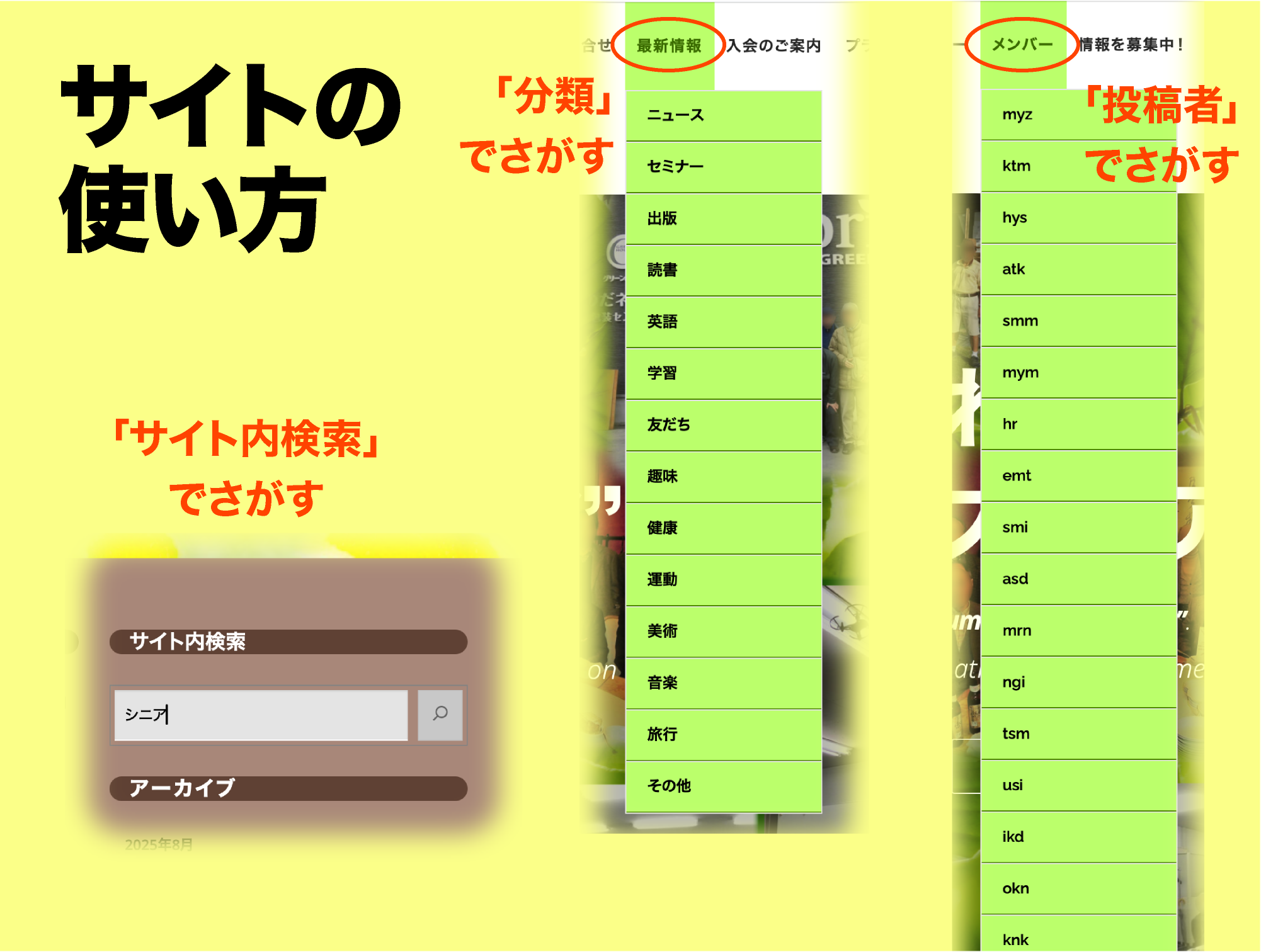 特異な経歴や才能、興味深い趣味を持ったアクティブシニアのメンバーが集まっています。