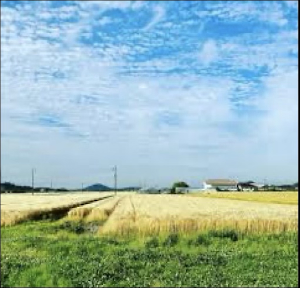 オープンに至るにはそれなりの苦労はあったようだ。当初の予定よりは遅れていたが、この4月25日から5月10日までのプレオープンの招待状が届いた。私は早速4月29日の昭和の日に妻と二人のランチ予約を入れた。その食堂の売りは「名田島の自然や食事、自家焙煎珈琲をゆっくりお楽しみください」とある。もともと名田島は新開作といわれ米作りの広大な干拓地であった。一面に農作地が広がり、近年は減反政策の中で大麦や小麦を栽培する耕地に転作していた。予約日は丁度麦畑が黄金色に穂をつけて山の緑とのコントラストがそれは見事な景色だった。