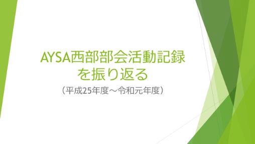 テーマ「平成25年度~令和元年度までのAYSA 西部部会活動を振り返る」