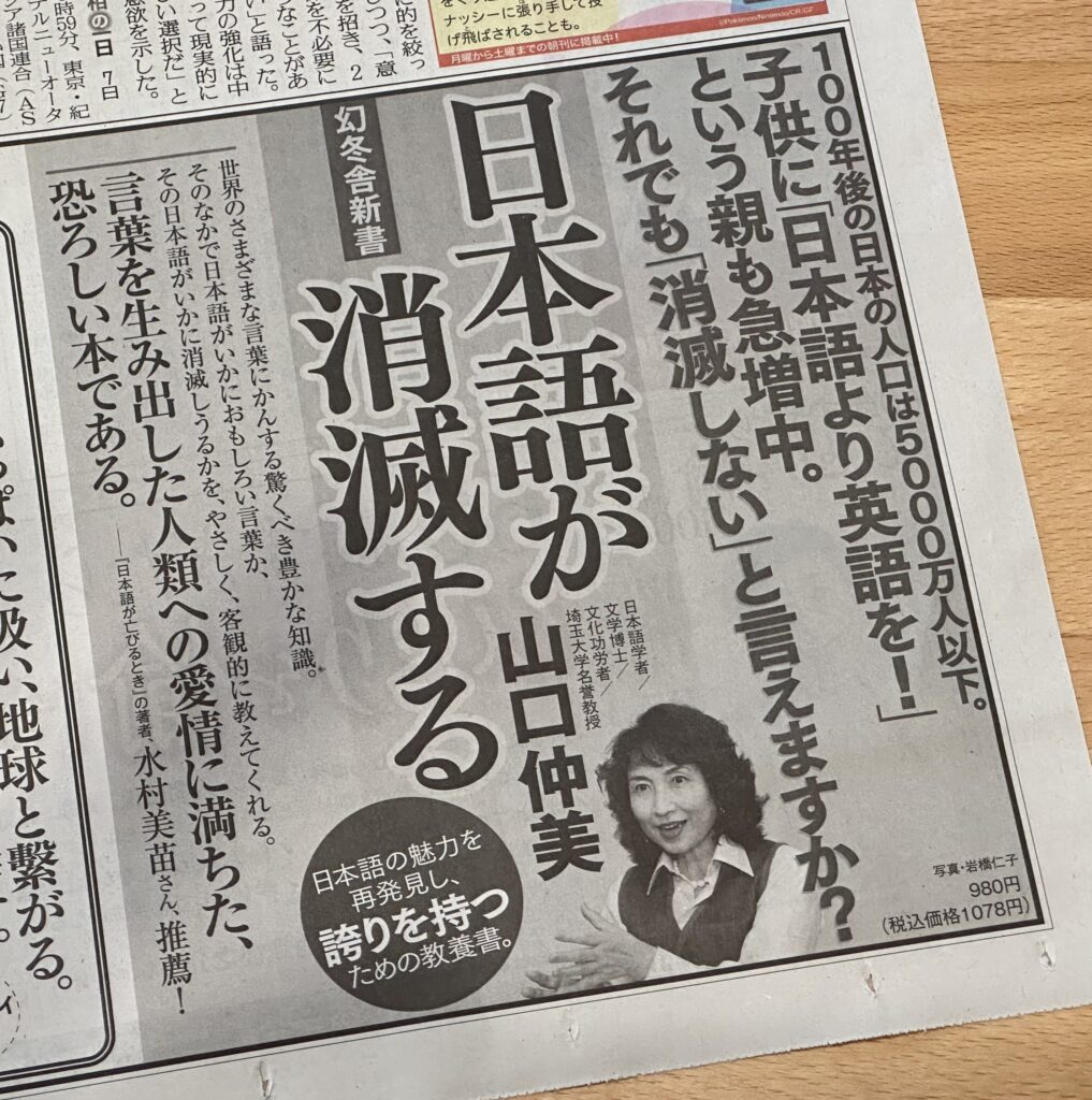 「日本語が消滅する」(山口仲美 著)という本の広告を見て考えた。