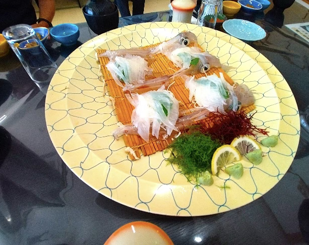 到着後、早速、呼子の海舟本店でイカ料理のランチとなった。予定より少し遅れていたが(途中で思わぬハプニングがあった)皆さんの到着に合わせてイカを捌いたとのこと。やはり新鮮な生き作りを食するにはイカソウメンにワサビを少量乗せお醤油にさらっとつけて食するのが最高だろう。そのコリコリ感と噛めば噛むほど甘みがじわりと口の中に広がる。そして「イカゲソ天」は揚げ油の質がいいのだろう。調味料は塩にするか天つゆにするかその人の好みで味わえる。この味覚がたまらないからこのような遠隔地でありながらリピート客もあるのだろう。私達が到着するまえに既に2台の観光バスが到着していた。ランチが終わると土産品を買う方もあったが何といってもいろんな種類の「しゅうまい」がその地の名品なのであろう。