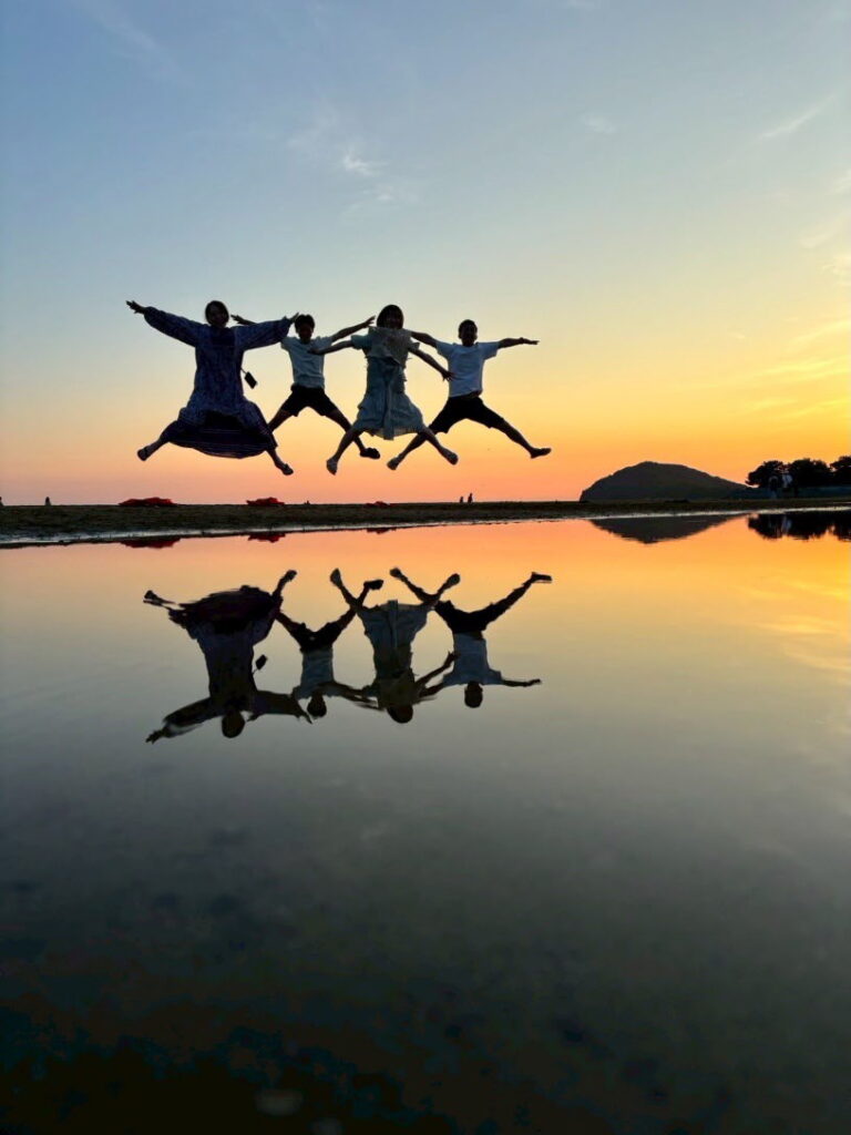 私の郷里は香川県三豊市ですが、最近は日本のウユニ塩湖だとインスタグラムで有名になった父母ヶ浜(チチブガハマ)があります。瀬戸内海の遠浅の浜で夕日をバックに、ボランティアのおじいさんがポーズをつけて写真を撮ってくれます。す。法事の前日は、私達は宿で呑んでいましたが、若い孫達は浜辺で写真を撮って楽しんだようです。